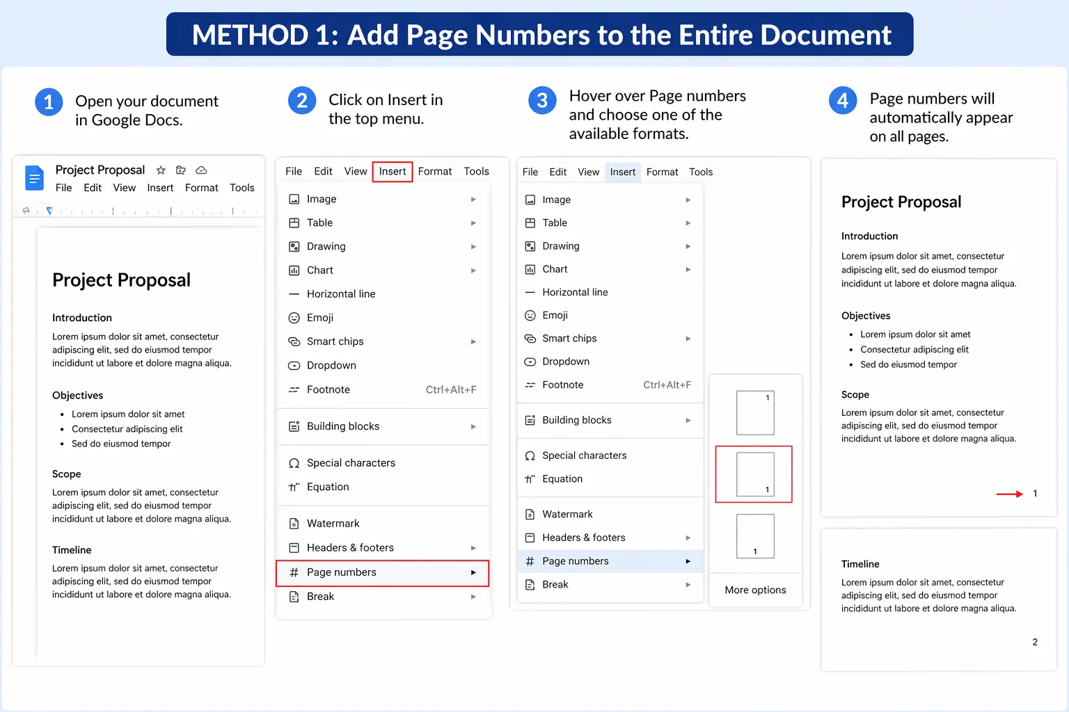Adding page numbers in Google Docs is a simple but essential step when creating professional documents like reports, essays, or business proposals. This guide walks you through the process step by step, along with a few customization tips.